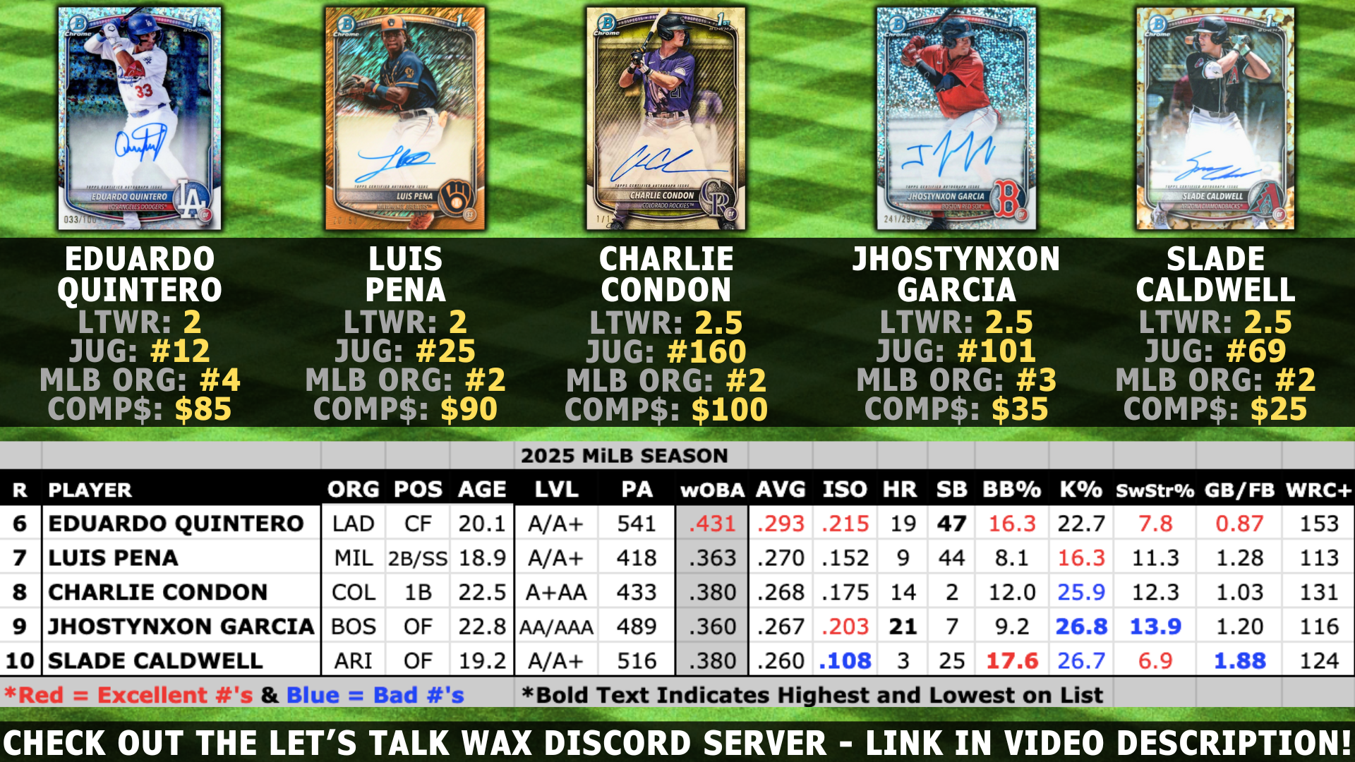 2025 Bowman is shaping up to be one of the top Bowman releases in recent years with a litany of Top 100 prospects on the checklist. In this article I will be breaking down my Top 10 favorite prospects in 2025 Bowman and also listing some pitchers to chase. To avoid confusion, you can find a quick breakdown of my different rankings on my Resources Page. I intentionally left some players off of this list for my upcoming article: Top 10 Sleeper Prospects in 2025 Bowman which should drop sometime next week.